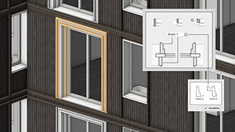 Das neue Fassadenmodul fasst Türen, Fenster, Wandausfachungen und Symbole zu flexiblen Baugruppen zusammen, die in Echtzeit editiert und im gesamten Projekt wiederverwendet werden können.